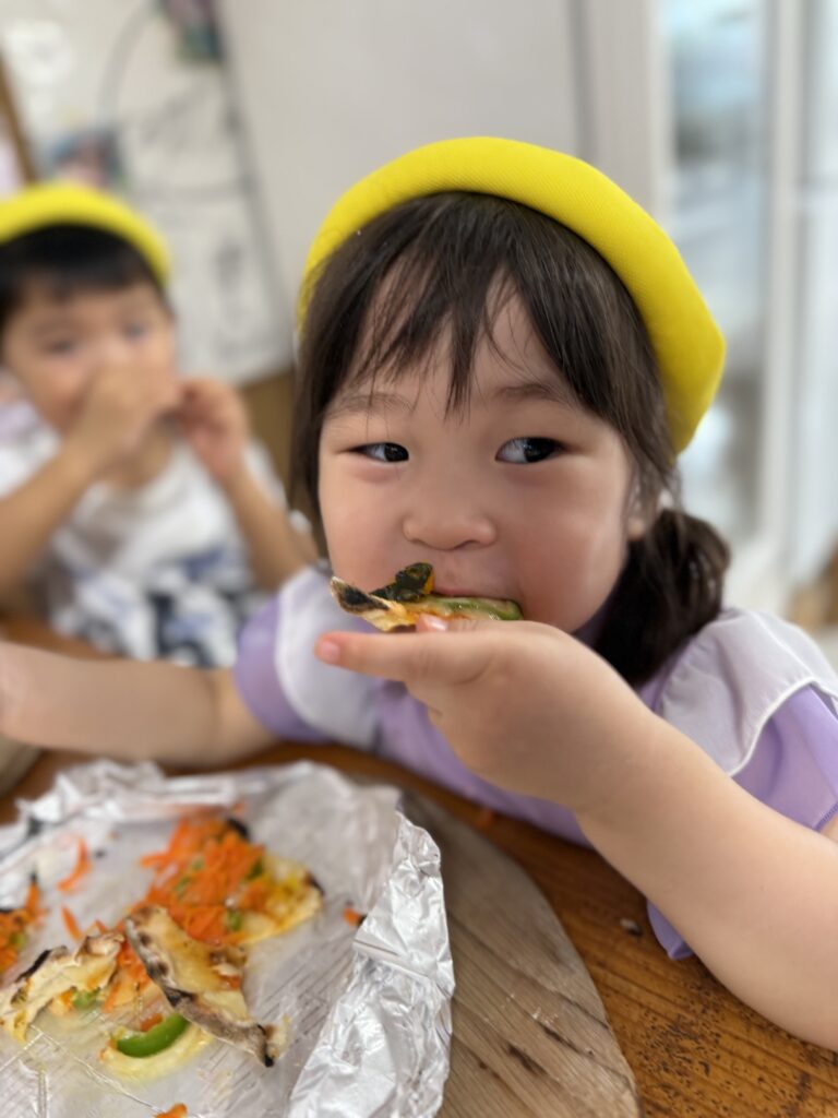 4歳児クラスになっても、今年も一緒にピザ作りに行きたい!!と思えるほど、とても美味しいピザが作れます😋