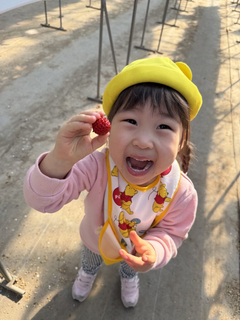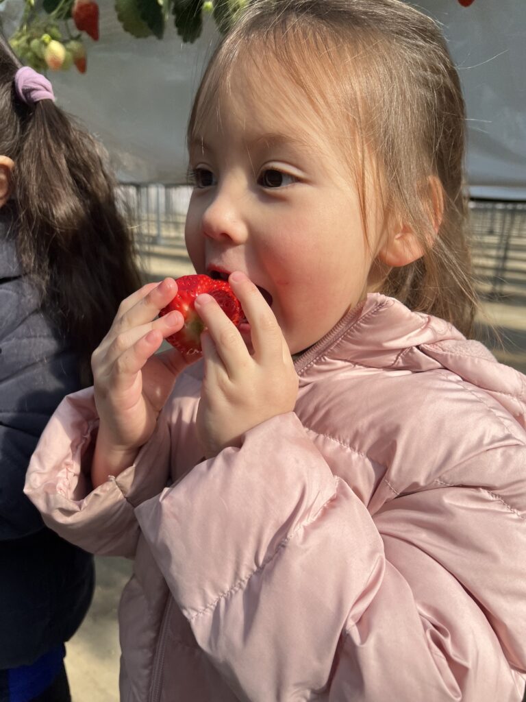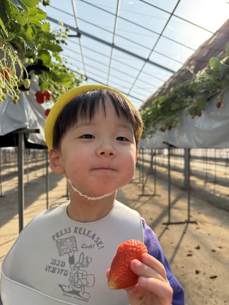 大きくて甘いいちご🍓を、お口の周りを真っ赤にしながらも、たくさん頬張って時間いっぱい食べていました☺️